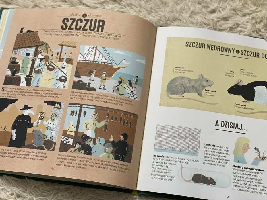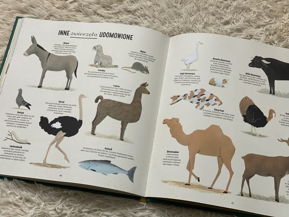 „Dzikie i domowe. Jak człowiek udomowił zwierzęta” to nowość ukazana nakładem Wydawnictwa Adamada. Tytuł zawiera sporo ciekawostek, jest wciągający i pouczający. Teść współpracuje z kolorowymi ilustracjami. Twarda oprawa i edukacyjny temat zachęcają do zapoznania się z mądrością przelaną na kartki. Słuszne jest, że ludzie cenią sobie zwierzęta za pomoc, opiekę i pracę. Chętnie korzystają z wytwarzanych przez nie surowców i z ich towarzystwa. Bez nich życie na ziemi byłoby zupełnie inne. Ciężko nawet sobie to wyobrazić. Zatem odnośmy się do nich z szacunkiem, ponieważ sporo im zawdzięczamy! Polecam.
