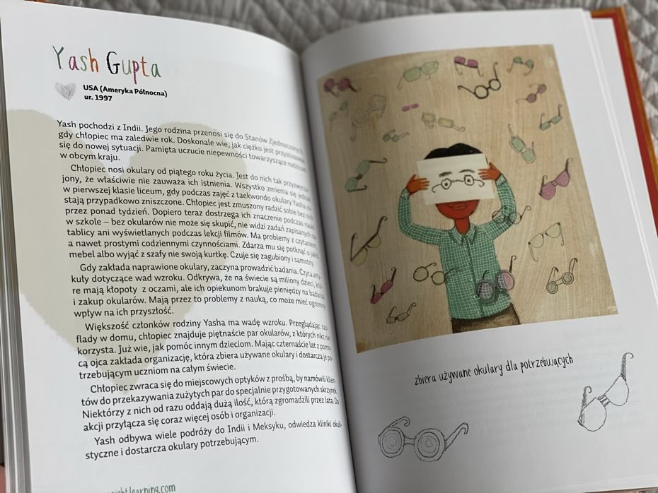 „I ty możesz zmienić świat” to bardzo inspirująca lektura dla najmłodszych o dzieciach, które dzięki wytrwałości pokazały, że mimo przeciwności warto walczyć o swoje prawa i pomagać innym.