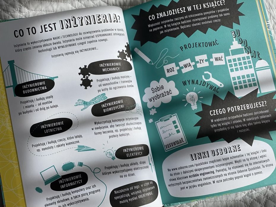 „Młody inżynier. Notatnik” to innowacyjna książeczka do ćwiczeń, zagadek do rozwiązania i obiektów do zaprojektowania.