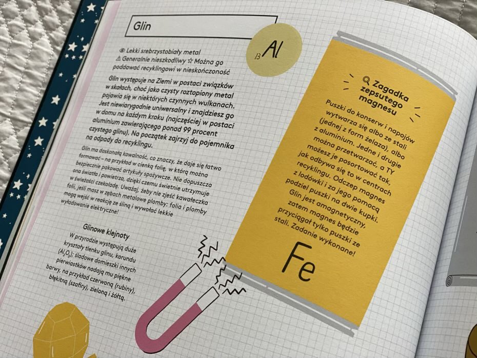 „Jest chemia! Śledztwo w sprawie pierwiastków ukrytych w twoim domu” to dobre spojrzenie na najczęstsze pierwiastki chemiczne w życiu codziennym, wokół nas i poznanie fascynujących oraz zabawnych faktów na ich temat. Moim zdaniem jest to książka przeznaczona dla dzieci, które mają chemię na lekcjach w szkole. Zwłaszcza że uważam, że niezwykle ważne jest, aby uczyć dzieci nauk ścisłych na wczesnym etapie ich życia i jednocześnie ubolewam, że takich pozycji nie było za moich czasów! Ta książka to świetny sposób na poszerzenie wiedzy dla wszystkich młodych miłośników nauki. Polecam.