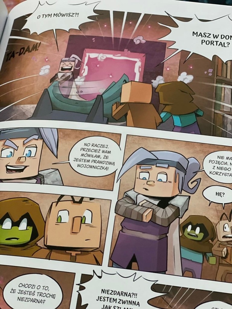„Spacer po Netherze. Minecraft. Pamiętnik 8-bitowego wojownika. Tom 2” to adaptacja bestsellerowej przygodowej serii o takim samym tytule. Mamy do czynienia z nieoficjalną opowieścią, w której głównymi bohaterami są postacie z gry. Ilustracje są dobrze zrobione i dobrze prezentują każdą scenę. Emocje są jasne, a atmosfera fajna. Śledzenie tego, co się dzieje, nie było problemem. Ale z drugiej strony tekst działa w miłej równowadze, dając wystarczająco dużo historii, aby pokryć to, czego nie potrafią same rysunki.