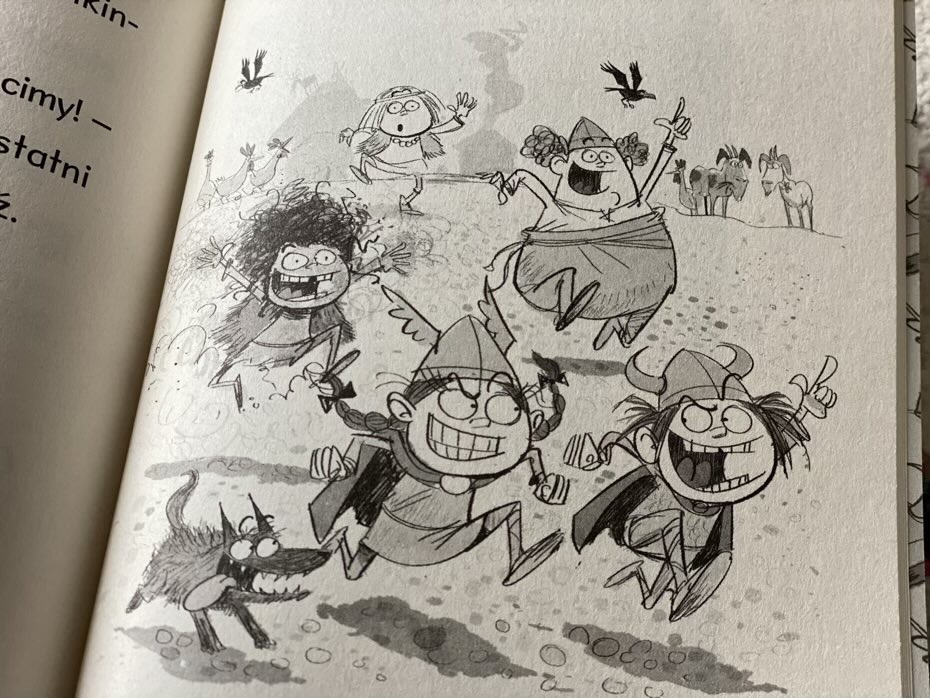 „Mali wredni wikingowie” to pełna przygód powieść, która już od pierwszych stron wciąga młodych czytelników. Zwariowane rodzeństwo ochoczo pakuje się w kłopoty, działa na przekór dorosłym i bawi nas do łez swoimi perypetiami. Tempo i długość każdej historii są dobre, a ilustracje zabawne, pełne akcji. W zapowiedziach książkowych pojawiła się już druga część o niesfornych bliźniakach, którą planujemy kupić i pokazać.