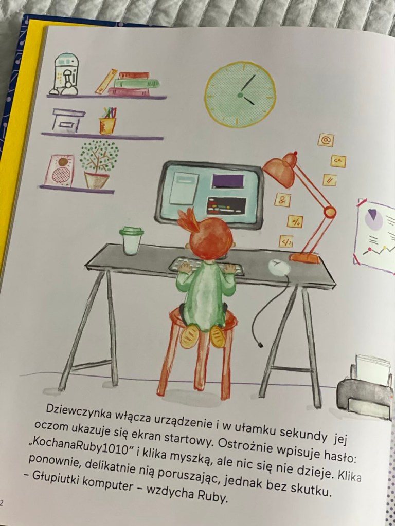 „Hello Ruby 2. Podróż do wnętrza komputera” to wciągająca i interaktywna lektura wyjaśniająca w jaki sposób działają komputery i wprowadzająca idee programowania w sposób nieprzytłaczający. Całe to podążanie za uroczą historią jest genialne, ponieważ rozwija zrozumienie tekstu przez dzieci poprzez zabawne zajęcia, podpowiedzi i budowanie ćwiczeń komputerowych. Kolorowym i zabawnym ilustracjom towarzyszy łatwy do odczytania i przystępny tekst, a wszystko to jest bardzo przyjazne dla młodych czytelników i naprawdę zachęcające.