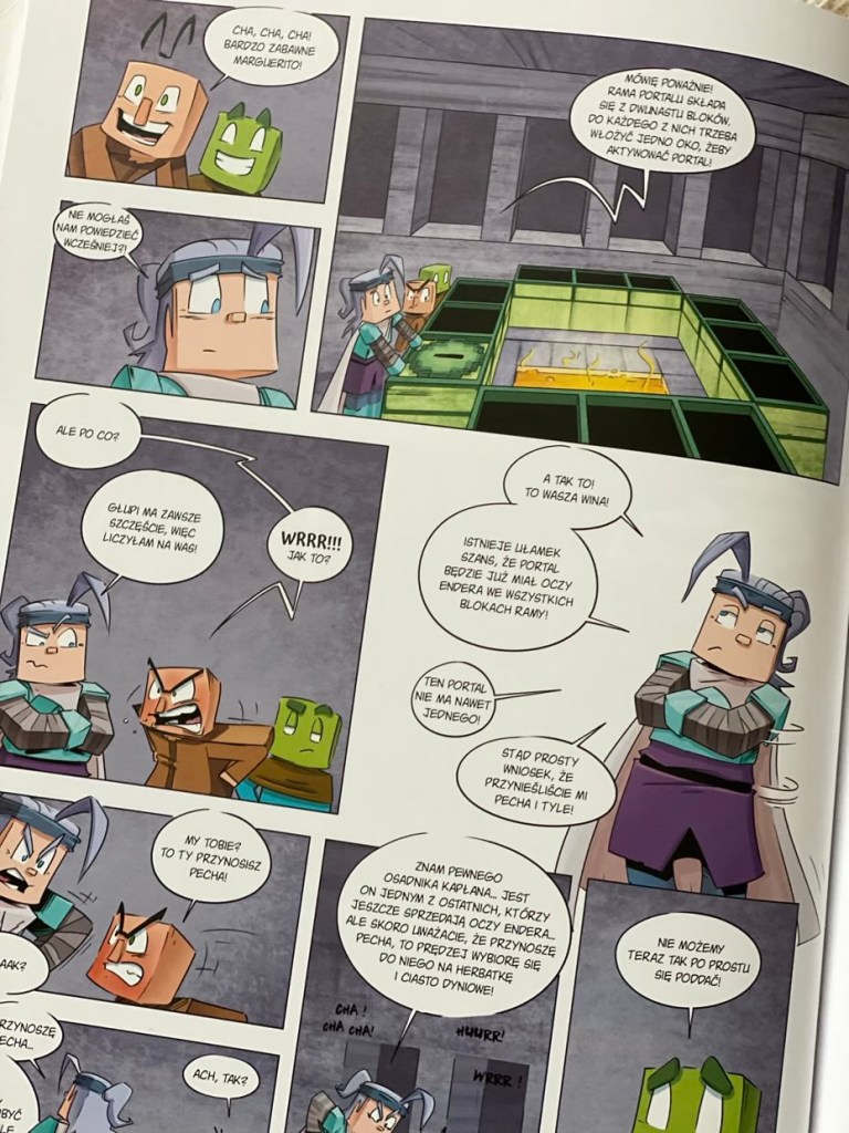 Młodzi czytelnicy, przeglądając kadry komiksu, będą świadkami przemiany Alberica w zombiaka, za sprawą wielkiego czarownika Minecrafta – Herobrine’a. Także walka z wojowniczką i jej sojusznikami wzbudza wiele emocji. Jednak na końcu dzieci będą mogły oddychać z ulgą, ponieważ Mistrz Alberic, w zamian za złotą zbroję, wykupił od osadnika kapłana wszystkie oczy Endera, właśnie te, które potrzebne są do portalu.