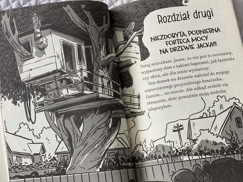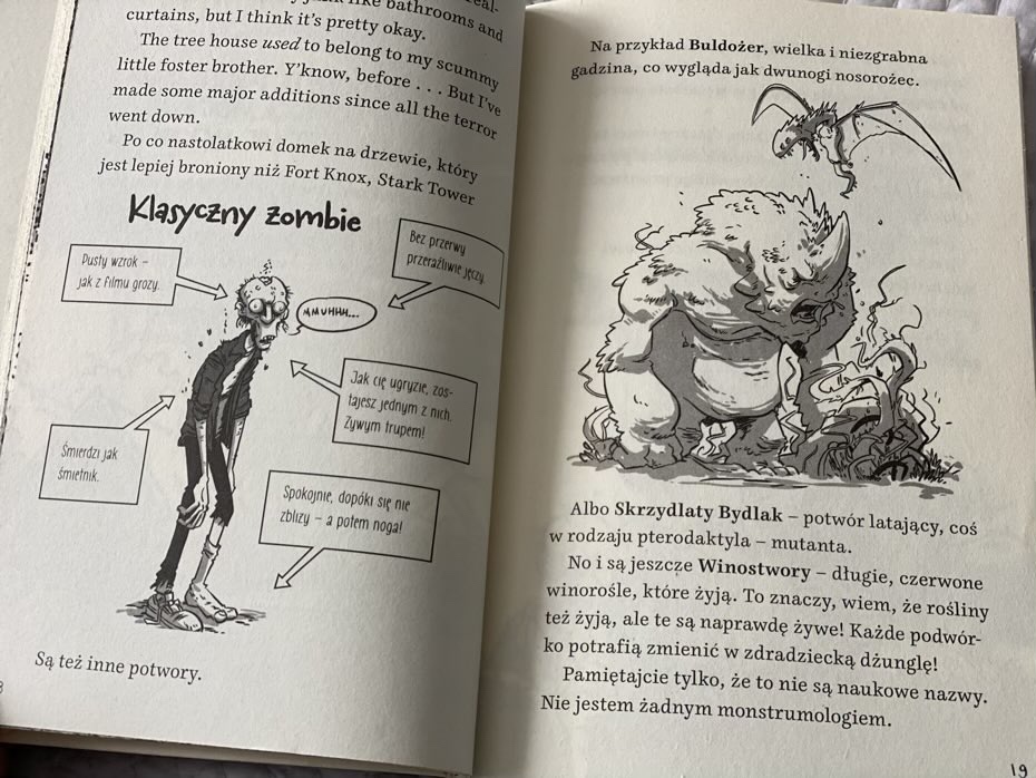„Ostatnie dzieciaki na Ziemi” to mieszanka tradycyjnej książki i powieści graficznej z czarno białymi rysunkami.