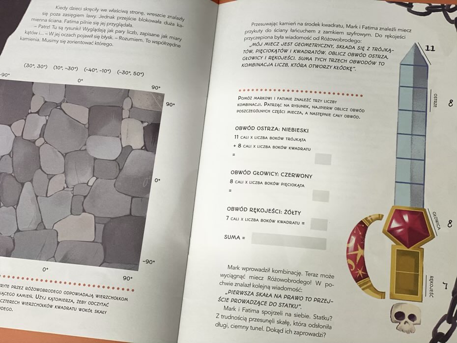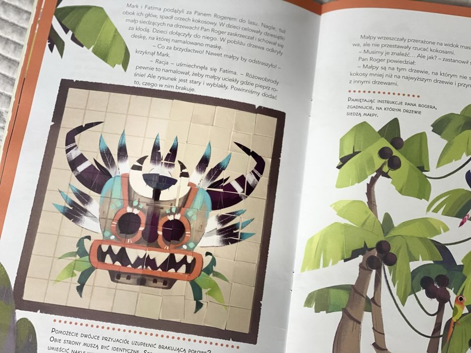 „Zaginiona wyspa skarbów. Escape Books” to ciekawy tytuł, który przemyca sporo nauki w formie zabawy. Książka łączy w sobie unikalne połączenie przygody i rozwiązywania zagadek ze wspaniałymi ilustracjami w tle.
