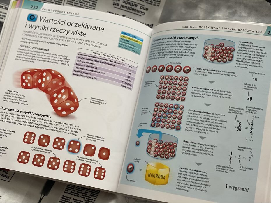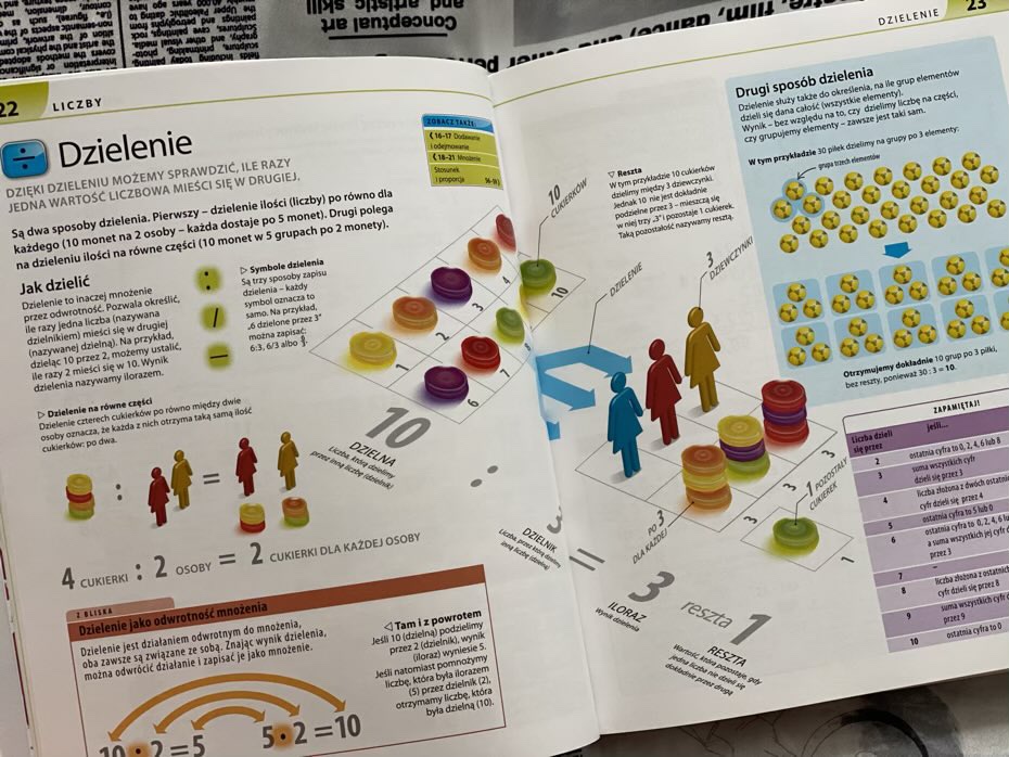Ten obszerny poradnik z atrakcyjnym stylem ilustracyjnym posiada wiele zagadnień, począwszy od podstawowej arytmetyki, po bardziej wymagające tematy, takie jak statystyka, geometria, czy algebra.