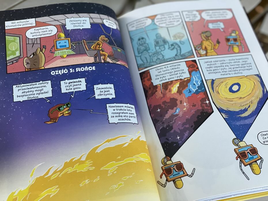 „Układ Słoneczny. Nasze miejsce w kosmosie” to kolejna propozycja Wydawnictwa Nasza Księgarnia z serii „Naukomiks”, w której młodzi czytelnicy przemierzają układ planetarny ze zwierzęcą załogą kosmiczną.