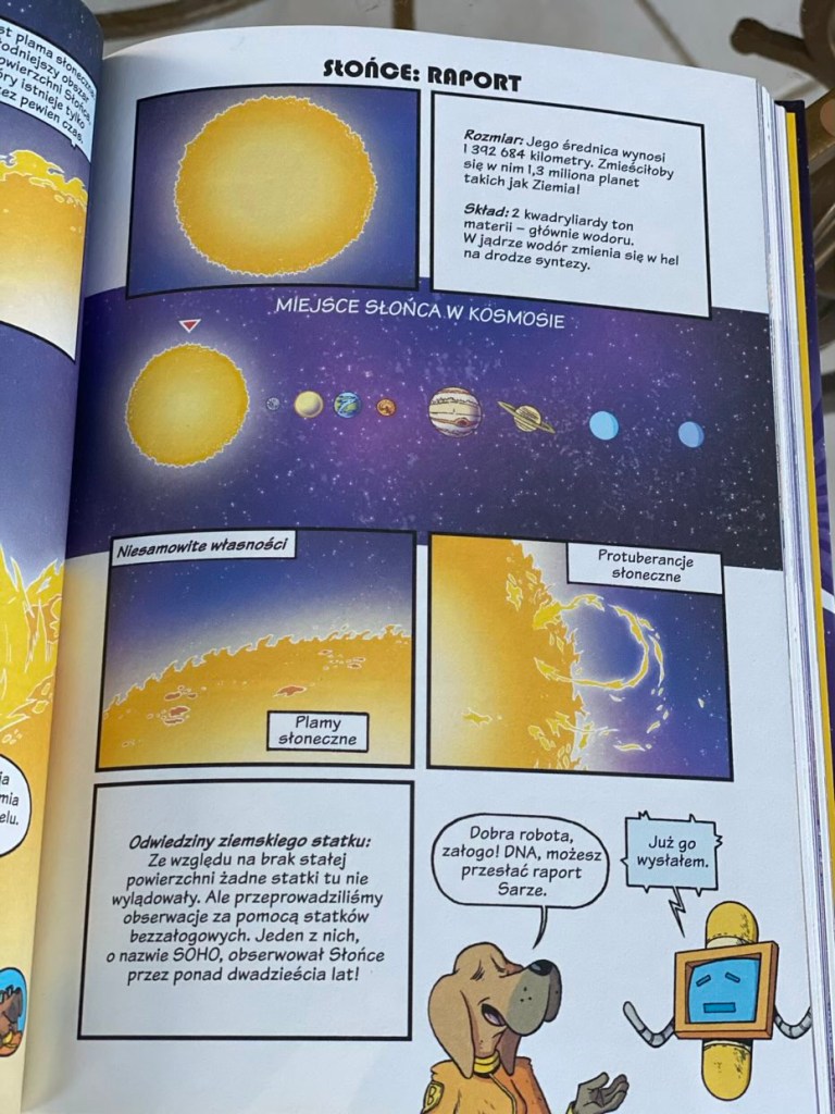 „Układ Słoneczny. Nasze miejsce w kosmosie” to kolorowy komiks dla dzieci opisujący nasze najbliższe planety i ich cechy. Ta książka jest doskonałym wyborem, jeśli chodzi o przegląd / wprowadzenie do Układu Słonecznego i może być punktem wyjścia do dalszych badań nad rzeczami, które statek napotyka po drodze. Omawiane warstwy sekcji słonecznej są bardzo ciekawe, ale nie przytłaczają czytelnika. Ilustracje są jasne i atrakcyjne, co jest ważną częścią powieści graficznej. Polecam.