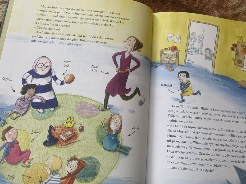 Pewnego razu pani Ach oznajmiła podopiecznym, że niedługo pojadą na wycieczkę. Początkowo dzieci zgadywały dokąd się udadzą, ale nikomu się to nie udało. Tylko Dima, jeden z przedszkolaków, wiedział czym jest Złota Jesień. Tak samo Oliwia, której dziadek z drewnianą nogą mieszkał w tym ośrodku od pewnego czasu. Dzieci w przedszkolu zastanawiały się także, czy mieszkają tam czarownice, ponieważ wiedziały z opowiadania o Jasiu i Małgosi, że czarownica też była seniorką.