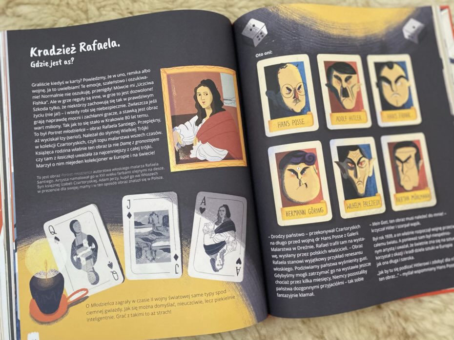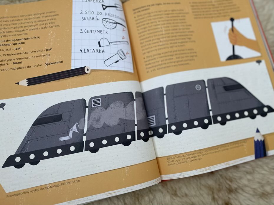 „Złoty pociąg i inne największe zagadki historii sztuki w Polsce” to nietuzinkowa książka dla dzieci, ukazana nakładem Wydawnictwa Znak, opisująca niezwykle sensacyjne wydarzenia, które zdarzyły się w kraju. Ilustracje fajnie współpracują z zagadkami, a tekst jest wciągający aż do ostatniej linijki. „Złoty pociąg i inne największe zagadki historii sztuki w Polsce” otwiera nową serię „Śledztwa detektywki Fishki” i jeśli kolejne części będą równie zabawne i ciekawe, z pewnością zagoszczą u nas na domowej, bibliotecznej półce. Polecam tytuł dzieciom powyżej 7. roku życia.