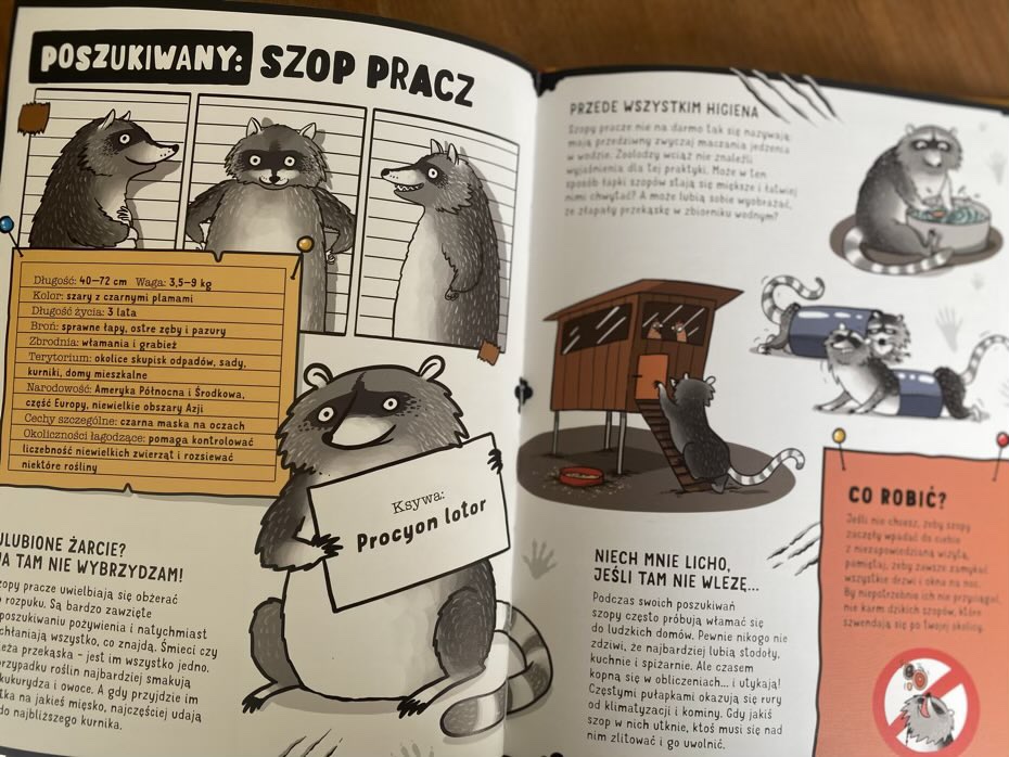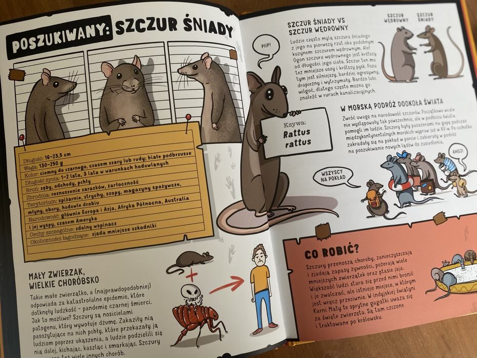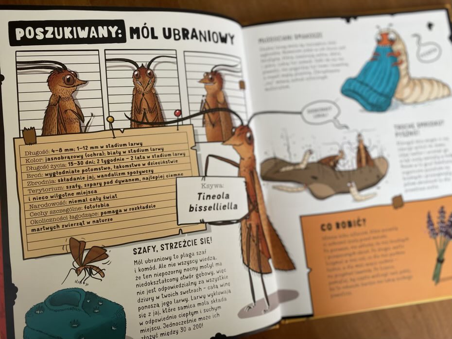 Następnie autor opisuje na stronach pełno faktów i ciekawostek dotyczące głównego bohatera, które opatrzone są zabawnymi rysunkami. Ostatnią informacją jest podsumowanie, w jaki sposób można zapobiec takiemu szkodnikowi i stawić mu czoła!