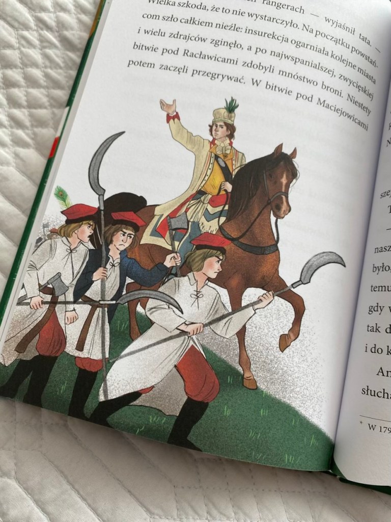 „Tadeusz Kościuszko. Wakacje z wodzem” to wciągająca lektura dla dzieci, zdradzająca im wiele ciekawych momentów z życia wielkiego polskiego patrioty.