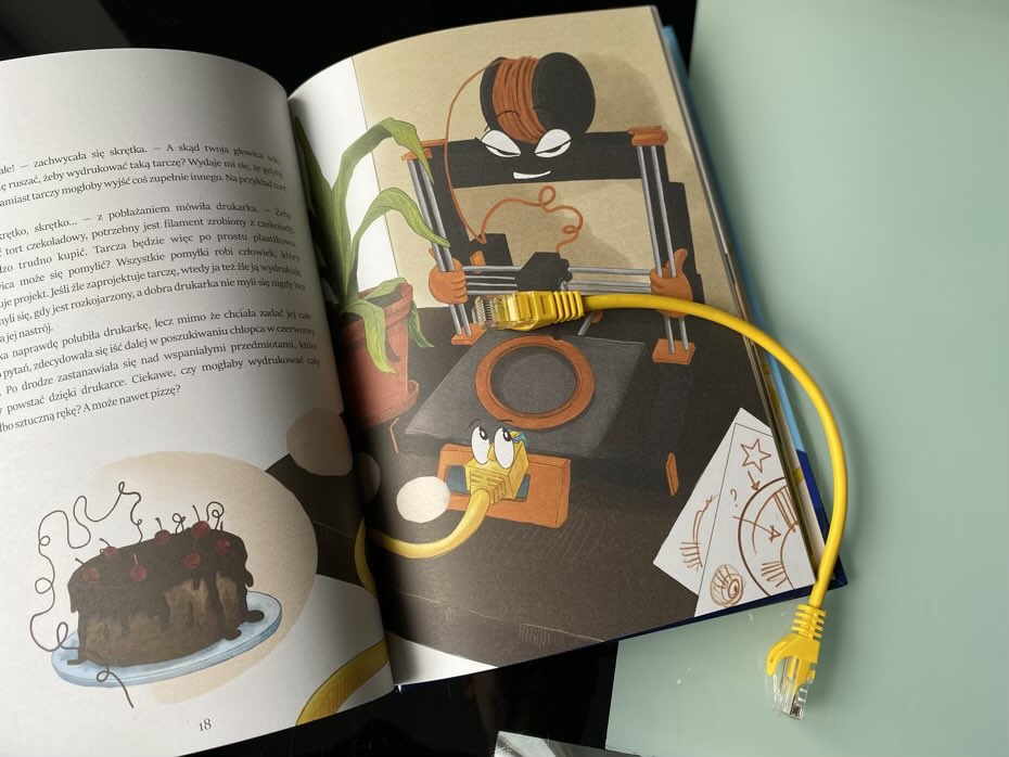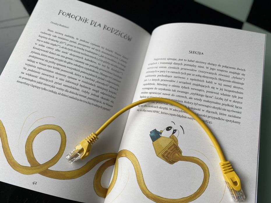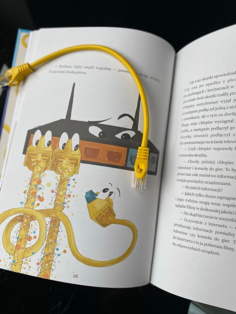 Ta niewielkich rozmiarów książka, już na samym początku wyjaśnia dzieciom, jak powstawała tytułowa bohaterka. Skrętka to kabel sieciowy służący do podłączenia dwóch urządzeń i transmisji danych pomiędzy nimi. Niby bezużyteczny drut powlekany giętkim materiałem, ale jednak potrzebny.