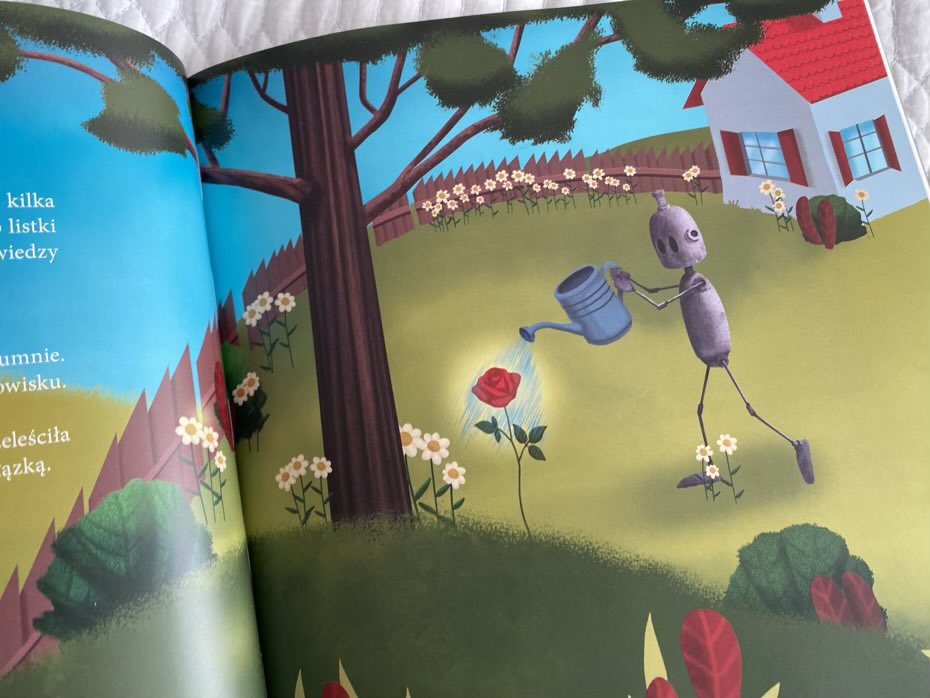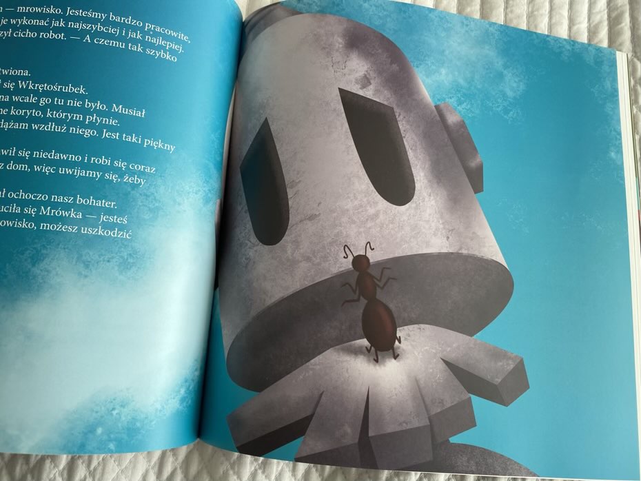 „Wkrętośrubek w poszukiwaniu szczęścia” to historia o uroczym robocie, który uczy młodych czytelników uniwersalnych wartości niezbędnych w życiu każdego człowieka. Ilustracje znajdujące się na stronach są dopracowane w każdym calu i przyciągają uwagę młodego odbiorcy. Polecam tytuł dzieciom po 4. roku życia.