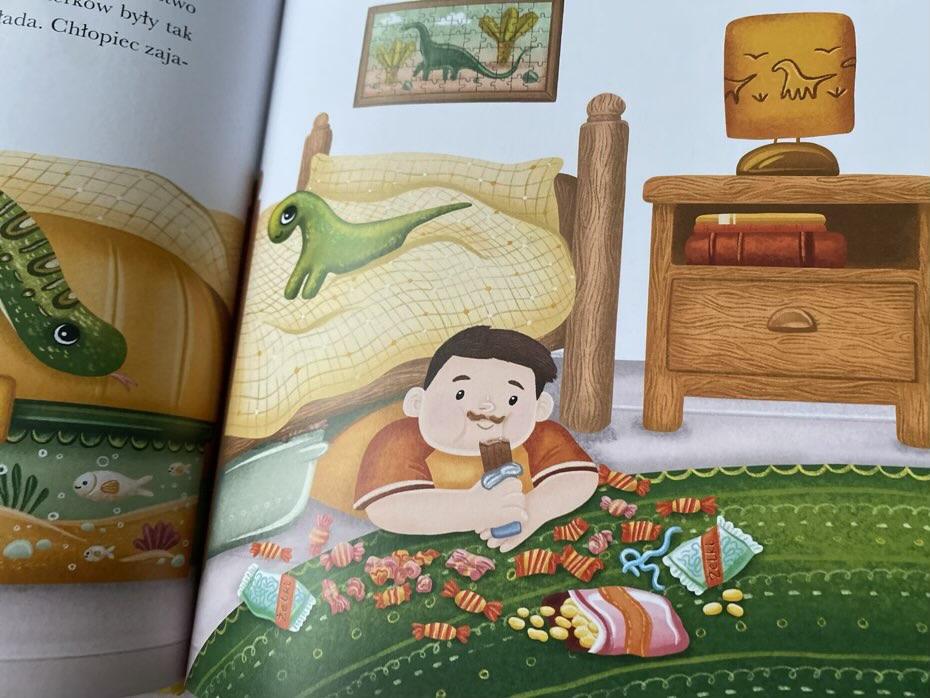 Następnie Adaś z mamą odwiedzili dietetyka, który wytłumaczył im, dlaczego warto zmienić swoje złe nawyki. Efekty pojawiły się dość szybko. Zmiana diety w tym: ograniczenie słodyczy, wprowadzenie do jadłospisu warzyw, owoców i nieprzetworzonej żywności, sprawiło, że Adaś odzyskał siły i tryskał energią.