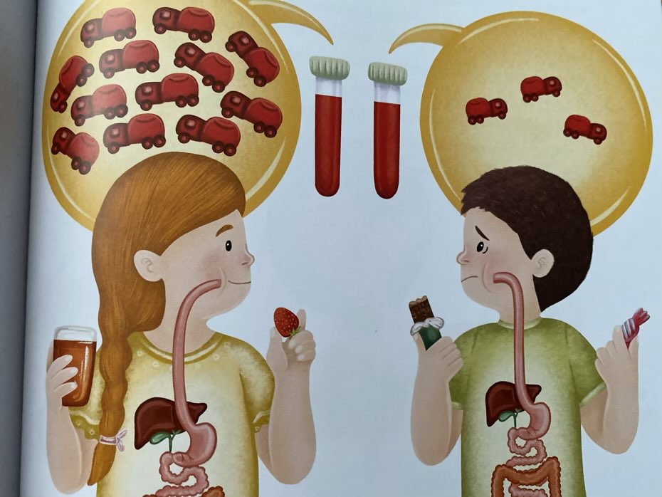 Mały Adaś uwielbia słodycze. Chowa je u siebie w pokoju pod łóżkiem. Pewnego dnia, podczas pobytu na placu zabaw, poczuł się słabo. Mama zabrała synka na badanie krwi, aby sprawdzić, co mu dolega. Adaś dowiedział się, że jego wyniki nie są najlepsze – ma niedobór żelaza. W aptece mama kupiła mu specjalny syrop, który został zalecony do poprawy jego stanu zdrowia.