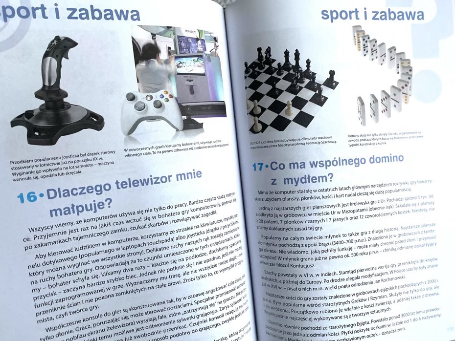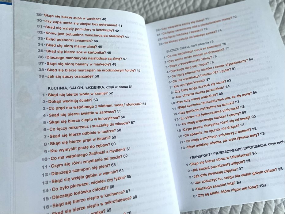 Książka podzielona jest na działy, co jest przydatne, jeśli dziecko czyta określone pytanie z danego zakresu i potrzebuje na nie rzetelnej odpowiedź. Każdy temat ma swoją stronę i ilustrację. Zaletą lektury jest to, że nie trzeba jej czytać od deski do deski. Wystarczy przejrzeć spis treści i wybrać to, co w danym momencie wzbudziło naszą ciekawość.