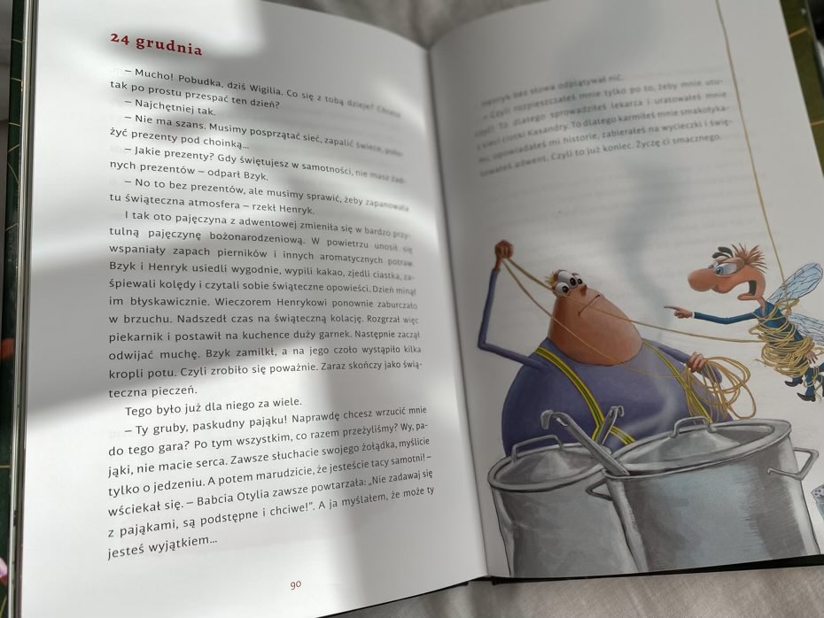 „Z pajęczyny się urwałeś?!” to moja pierwsza propozycja na adwentowe wieczory. Jest to zabawna, ilustrowana historia, podzielona na 24 części, która umili dzieciom okres czterech tygodni poprzedzających święto Bożego Narodzenia.