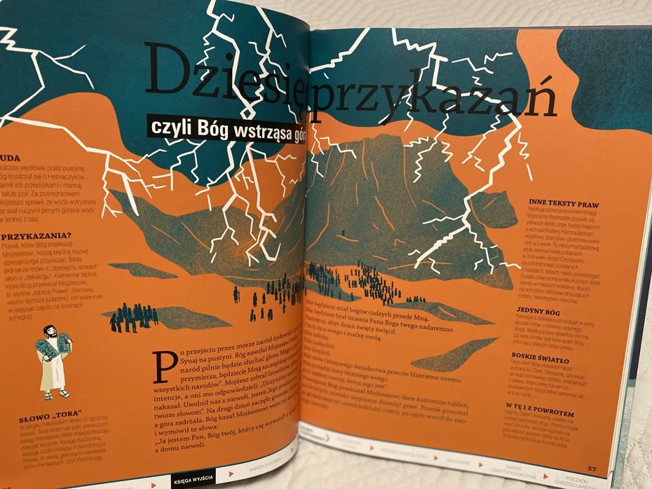 Na każdej podwójnej rozkładówce widnieje akapit przedstawiający omawiany temat, a anegdoty i mapy stanowią dodatkowe wsparcie dla czytającego.