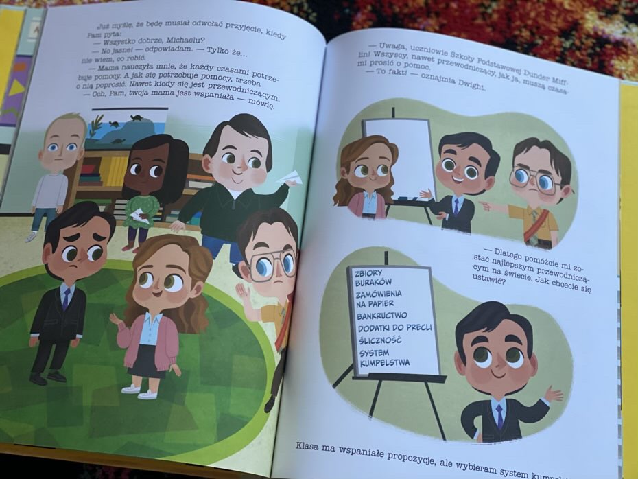 “The Office. Dzień w podstawówce Dunder Mifflin” to kolorowa książeczka dla dzieci oparta na programie telewizyjnym i postaciach z „Biura”.