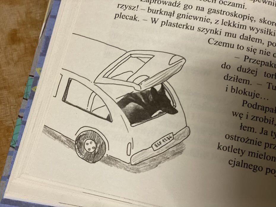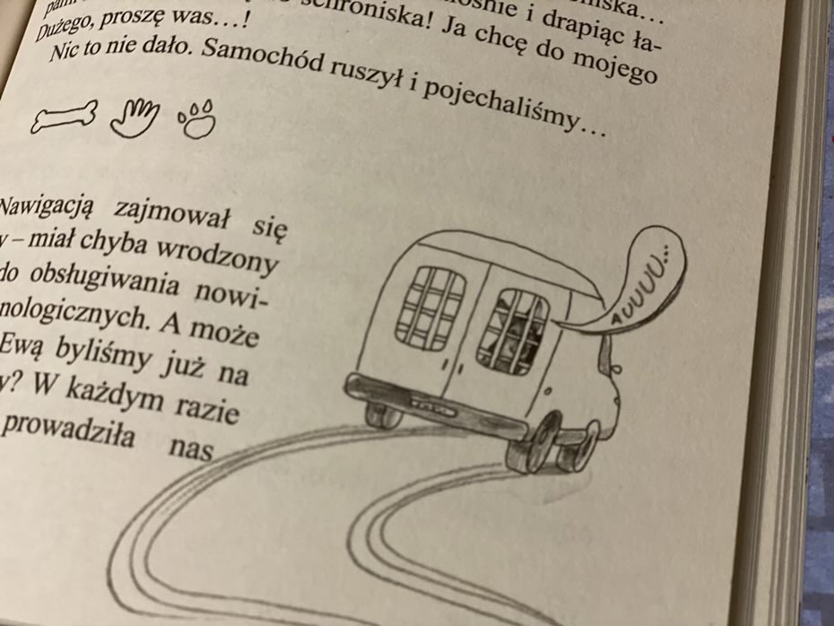 Książkę czyta się ekspresowo szybko. Gdzieniegdzie na stronach pojawiają się czarno białe ilustracje. Fajnie jest to, że opowiadania przeplatają się z perspektywy psa i Młodego – Marcina. Po raz kolejny muszę przyznać, że jestem pod wrażeniem historii z udziałem Elfa. Trochę się bałam, co może się przytrafić pieskowi, kiedy został sam w lesie, a na końcu trafił do nielegalnej posesji, gdzie odbywały się walki czworonogów. Jednak wszystko skończyło się szczęśliwie dla książkowych bohaterów, co mnie i Adasia uspokoiło.