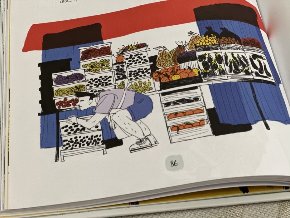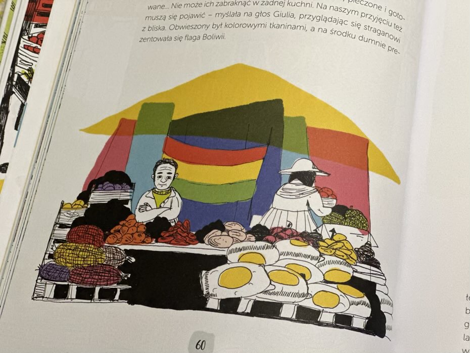 Dzięki dziadkowi Bruno każde stoisko staje się fascynującym spotkaniem, a za każdym warzywem kryje się niespodzianka. Następujące po sobie rozdziały przedstawiają entuzjazm Giulii, wyjaśnienia starszego pana oraz wielu postaci, które wypełniają strony książki, a niektóre szczegóły są wyróżnione kolorowymi ramkami, aby przyciągnąć uwagę czytelnika.