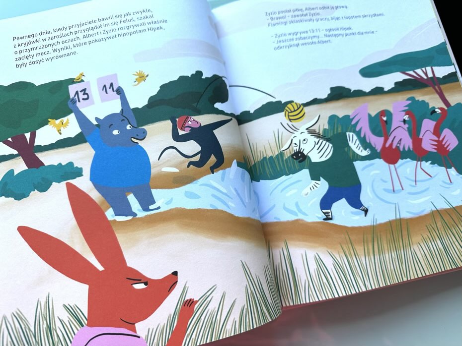 Pewnego dnia przyjaciele rozgrywają mecz na sawannie. Tylko szakal Feluś przyglądał się zabawie, nie biorąc w niej udziału. Kiedy następnego dnia zwierzęta chciały porzucać piłką, okazało się, że ta zniknęła. Feluś ją schował, aby zrobić innym na złość. Jednak szybko został zdemaskowany przez graczy i przegoniony. Zapłakanego szakala znalazła zaprzyjaźniona żyrafa i od razu zrozumiała, w czym rzecz. Nakłoniła Felusia, aby poszedł do pozostałych zwierząt i się wytłumaczył. Wszyscy zgromadzeni na sawannie wysłuchali go i dzięki jego odwadze i sile skruchy, z powrotem przyjęli do swojej drużyny na kolejne mecze.