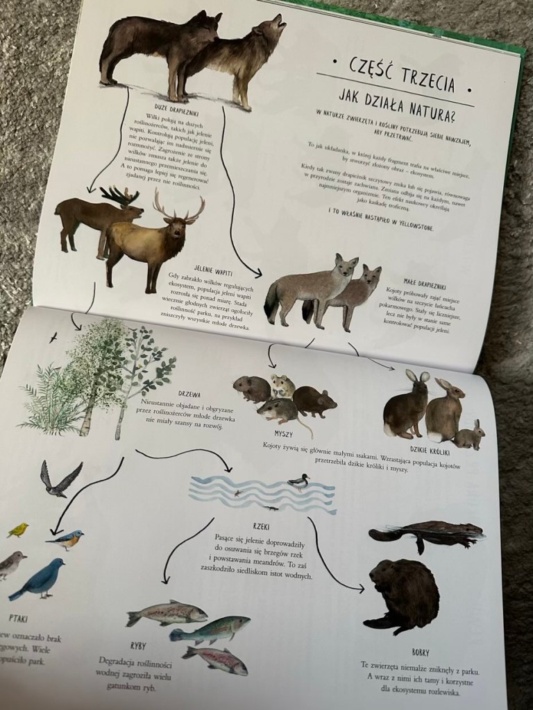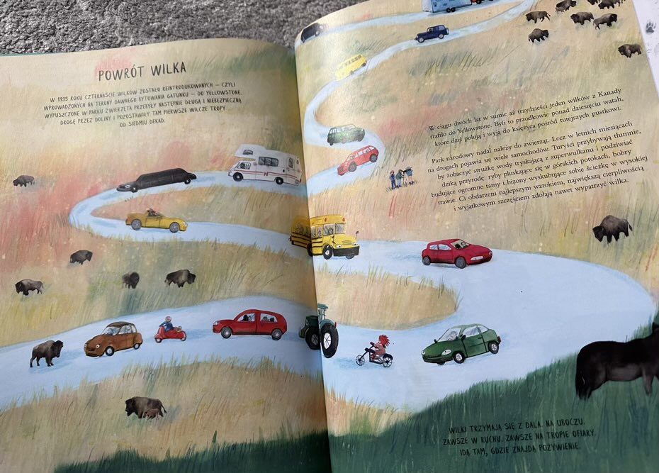 Na kartach publikacji młodzi odbiorcy prześledzą losy wilków, które dzięki determinacji i uporowi ekologów ponownie pojawiły się w Yellowstone. Ta lektura doskonale łączy się z wszelkimi tematami dotyczącymi ekosystemów i zagrożonych gatunków. Sposób, w jaki historia zmienia postrzeganie wilków przez czytelnika jest dobrym akcentem i stanowi świetną dyskusję na temat konotacji oraz stereotypów.