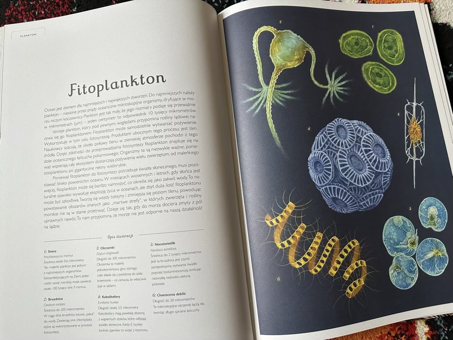 Prawdziwym atutem lektury są zdjęcia. Ilustracje są kolorowe i pełne wdzięku. Wyklejki natychmiast zanurzają młodego odbiorcę w świat oceanu, a szczegółowe ilustracje w środku przedstawiają ogromną różnorodność żyjących w nim stworzeń. Każdy rysunek opatrzony jest etykietą, aby mali czytelnicy mogli zidentyfikować różne pokazane gatunki.