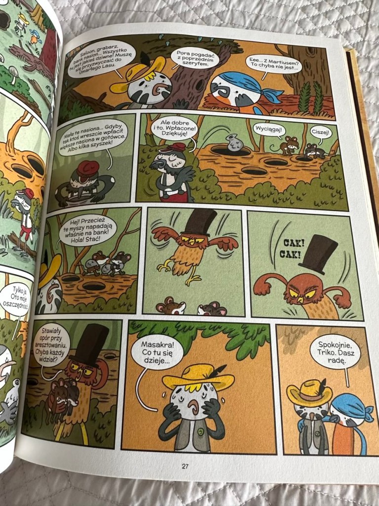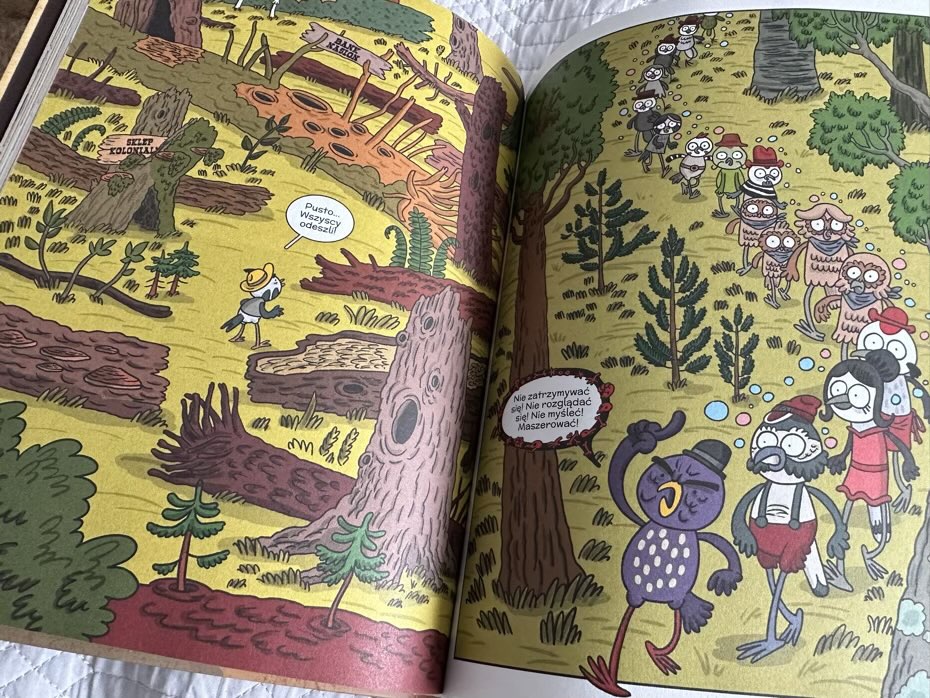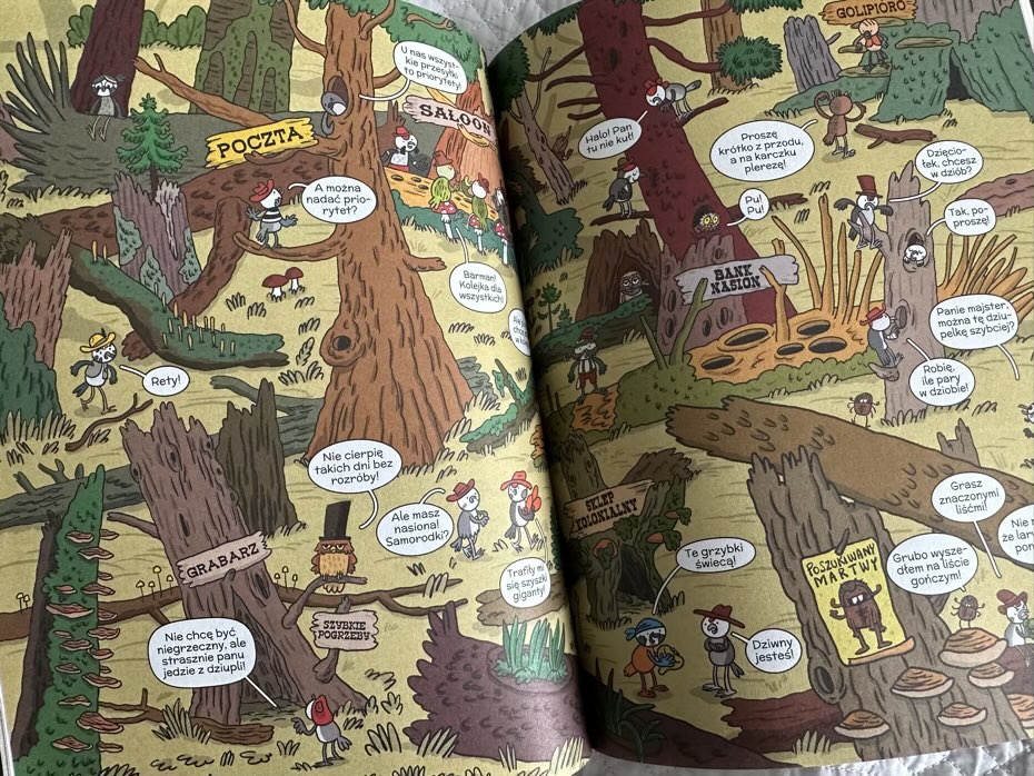 „Umarły las” to powieść graficzna, która edukuje młodych czytelników dostarczają im sporą dawkę wiedzy o życiu oraz zwyczajach różnych gatunków ptaków. Tytuł polecam każdemu nie zależnie od wieku, kochającego przyrodę i komiksy.