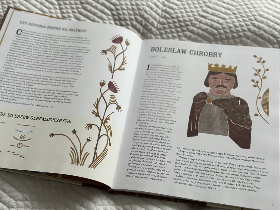 Nie sposób spisać dzieje Polski w jednej książce. Jednak Zuzanna Orlińska postarała się, aby dokonać tego w przystępny i zrozumiały dla młodych czytelników sposób. Spisała drzewa genealogiczne, aby pokazać skąd wyłaniały się kolejne znane postacie historyczne.