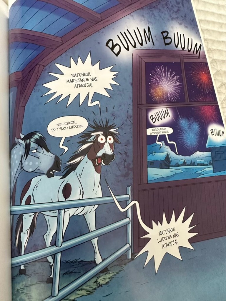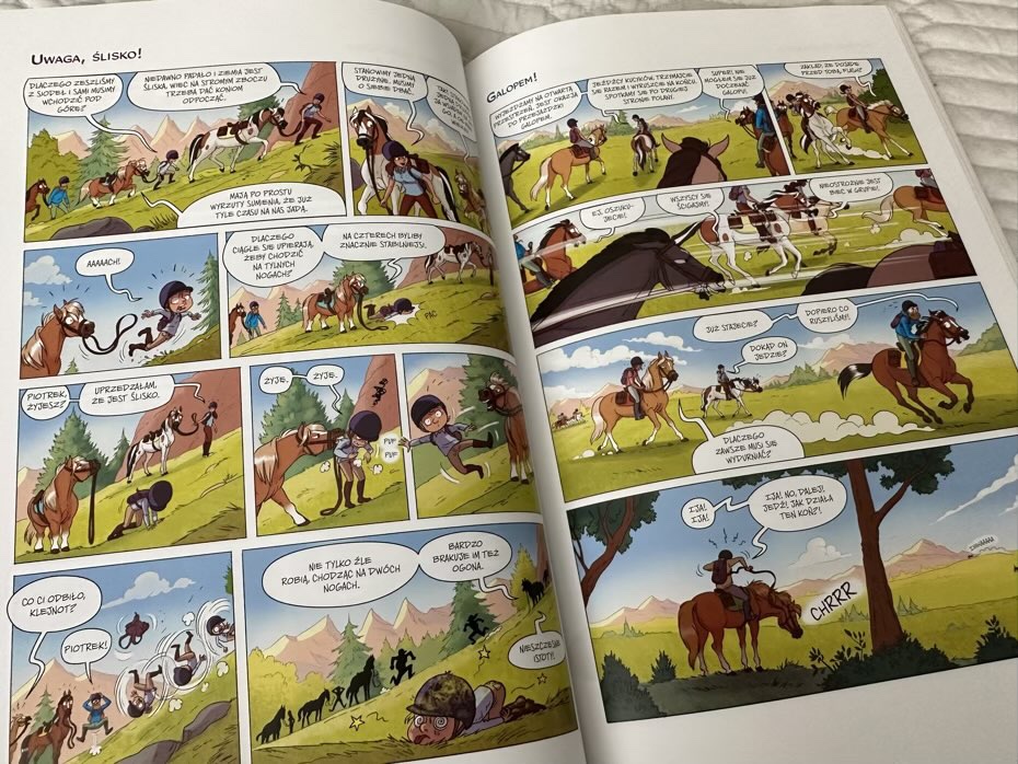 „Z rozwianą grzywą. Koń by się uśmiał! Tom 2” to powieść graficzna, która porwała Adasia i nie pozwoliła mu odłożyć książki na półkę. Każdą wolną chwilę nasz synek poświęcał lekturze, aż do momentu jej ukończenia. Z niecierpliwością czeka teraz na kolejną część, która jest w trakcie przygotowania.