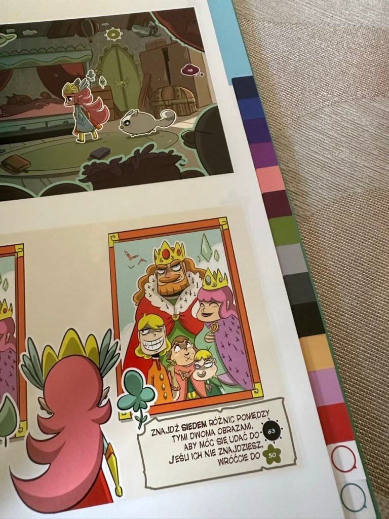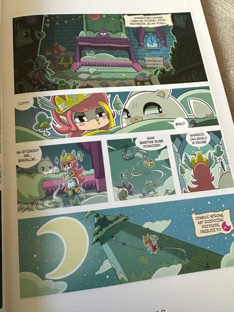 „Ucieczka. Kalinka i Chojrak” to komiks paragrafowy w ładnym wydaniu, polecany nie tylko dziewczynkom – chłopcy także mogą się świetnie tutaj bawić. Tytuł nadaje się od 6. roku życia i przyznam, że biorąc pod uwagę okładkę z księżniczką, bałam się, że książka będzie odrzucona przez mojego synka. Na szczycie główna bohaterka ma swój silny mały charakter i różni się od tradycyjnej księżniczki Disneya. Dlatego myślę, że “Ucieczka. Kalinka i Chojrak” znajdzie powodzenie wśród dzieci niezależnie od płci.