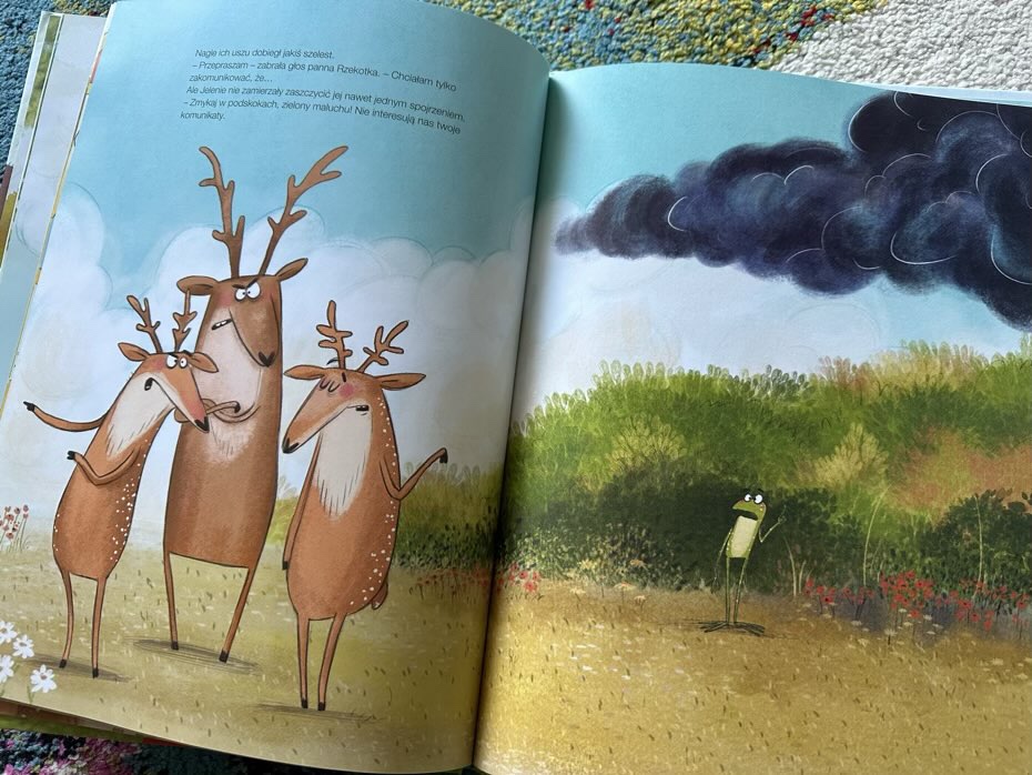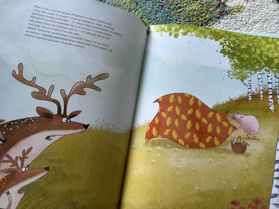 „Przesuń się, jeleniu!” to książka obrazkowa dla dzieci o tolerancji i dzieleniu się.