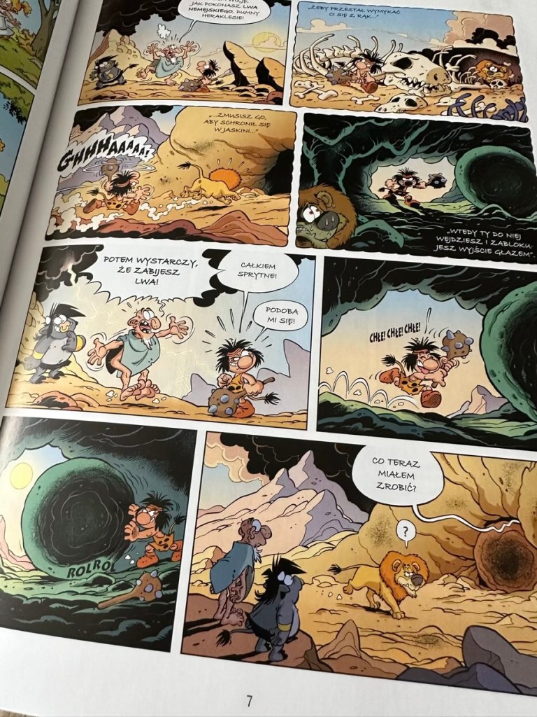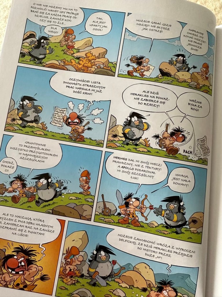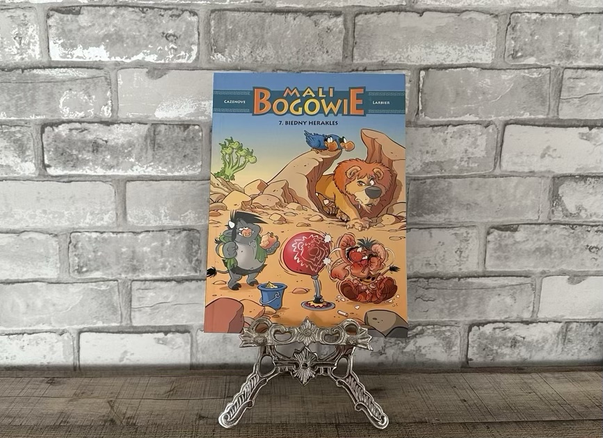 „Mali bogowie. Biedny Herakles” to siódmy album prześmiesznych przygód zwariowanych kandydatów na bogów i herosów starożytnego Olimpu.