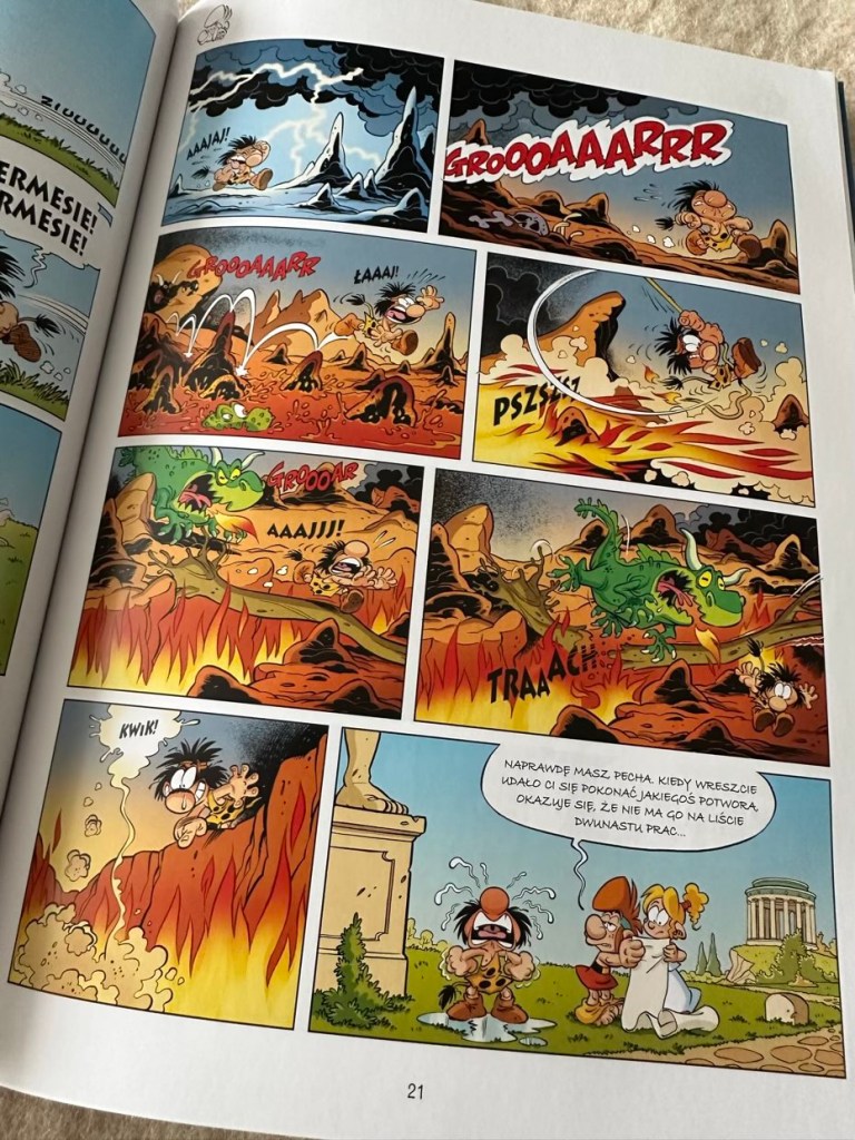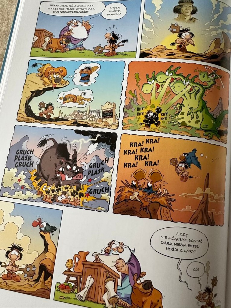 Każda z powyższych prac została wspomniana na stronach komiksu w bardzo żartobliwy sposób. Jednak żadna z nich nie było ani prosta, ani zabawna, przynajmniej dla Heraklesa. Tak jak w poprzednich częściach „Małych Bogów”, kreska jest wizualnie przyjemna dla oka, a przezabawne kadry z udziałem mitologicznych bohaterów umilają czytanie lektury. Kolorowe i szczegółowe rysunki to duża zaleta tytułu. Dla czytelników Wydawnictwo Egmont zapowiedziało następny tom, który jest już w przygotowaniach. Mam tylko nadzieję, że zbyt długo nie będziemy musieli czekać. „Centaur by się uśmiał” ma pojawić się jeszcze w tym roku.