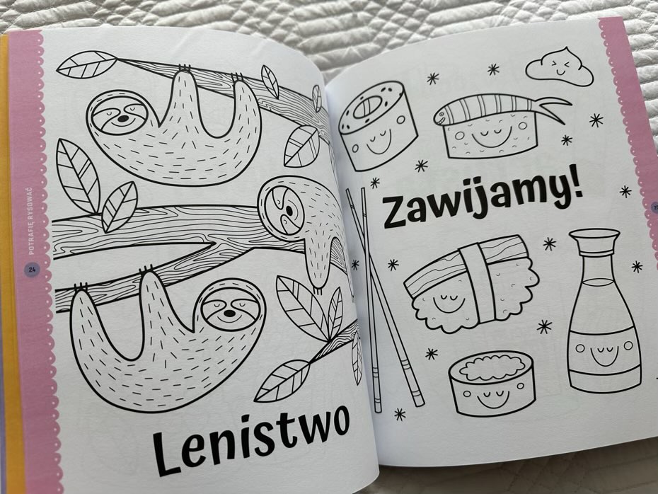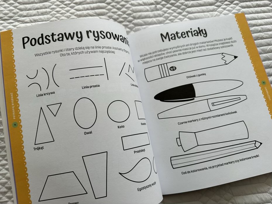 „Potrafię rysować” zawiera ponad 80 najróżniejszych propozycji rysunkowych dla najmłodszych. Oprócz instrukcji w książce znajduje się sporo miejsca na tworzenie własnych obrazków bezpośrednio na stronach lektury. Uważam, że „Potrafię rysować” to wspaniały tytuł, który w kilku prostych krokach pokazuje dzieciom, jak łatwo mogą narysować różne zwierzęta czy inne przedmiot, a potem je pokolorować.