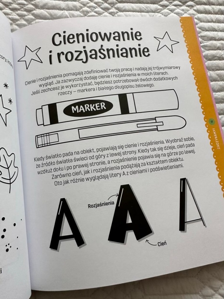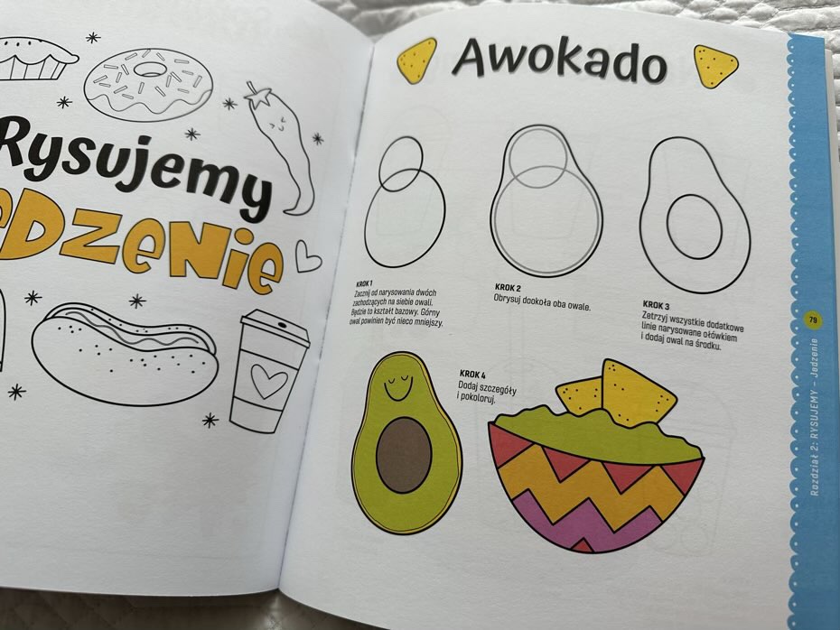 Książka zawiera wiele świetnych pomysłów z prostymi do wykonania instrukcjami. Dzięki obrazkowemu spisowi treści młody artysta sam może wybrać, co chce stworzyć i co najbardziej mu odpowiada w danym momencie. Każdy rysunek podzielony jest na małe etapy i jest łatwy do opanowania przez dziecko.