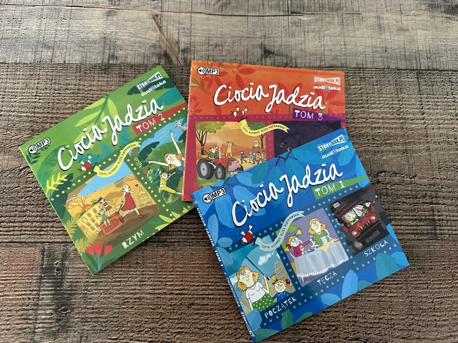 „Ciocia Jadzia” to pakiet płyt CD, w którym znajduje się wiele krótkich opowieści o tytułowej bohaterce i jej siostrzenicy.