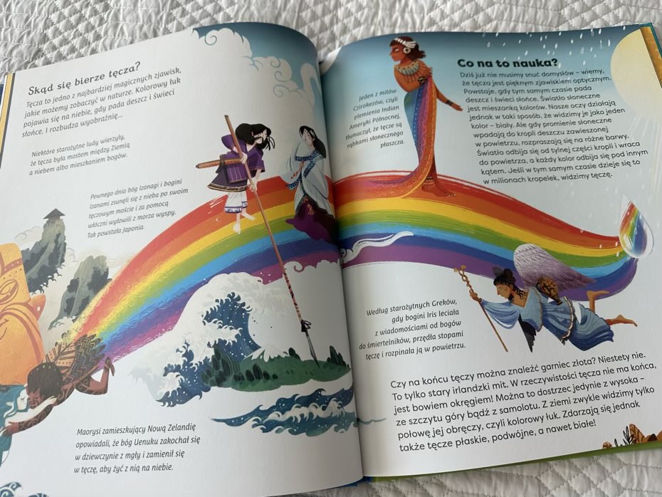 Z książki dzieci dowiedzą się m.in. dlaczego Ziemia nie jest płaska, skąd się bierze tęcza i błyskawice, dlaczego słońce wschodzi i dlaczego niebo nie spada nam na głowę. Jak rozumiano i postrzegano otaczający świat w różnych kulturach i okresach.