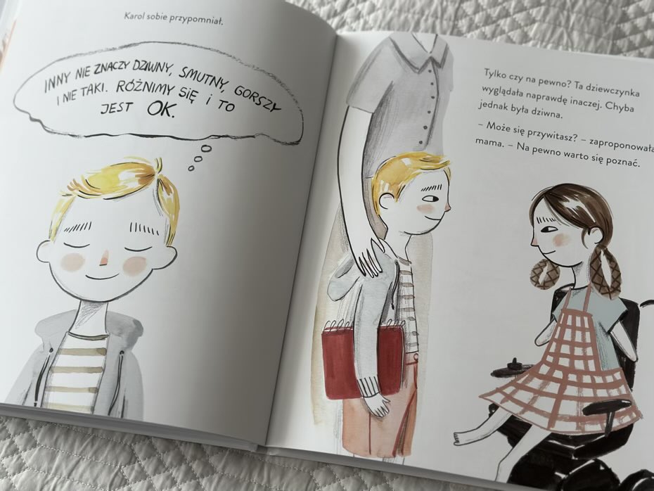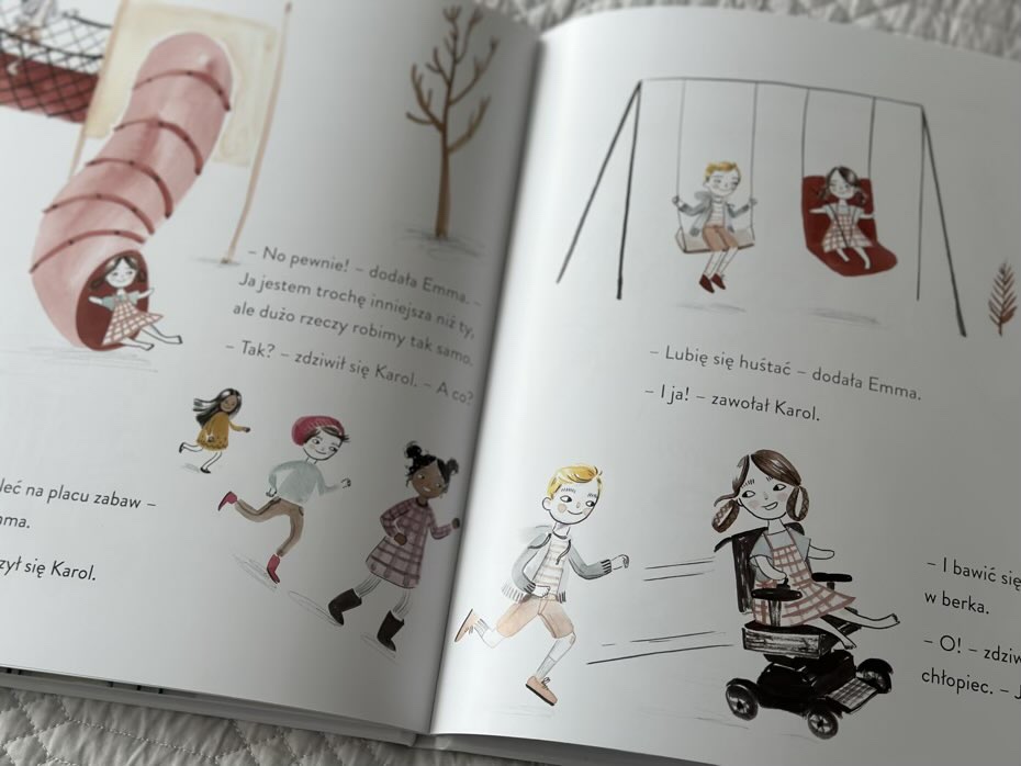 „Kiedy Karol poznał Emmę” to książka, która wspiera myślenie o niepełnosprawności, uczy życzliwości i tłumaczy, jak reagować, gdy spotykamy kogoś, kto jest całkiem inny niż my.