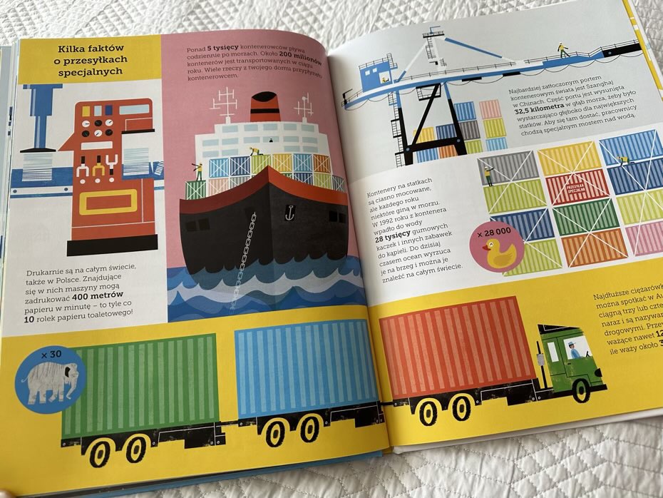 „Przesyłka specjalna. Jak trafiłam w twoje ręce” to tytuł z żywymi ilustracjami, które powinny zadowolić młodych czytelników, ciekawych sposobu tworzenia i dystrybucji książek. Oprócz przedstawienia tematu handlu międzynarodowego, myślę, że ta lektura będzie dobrym wprowadzeniem do wzajemnych powiązań zarówno przedmiotów, jak i ludzi. Polecam.