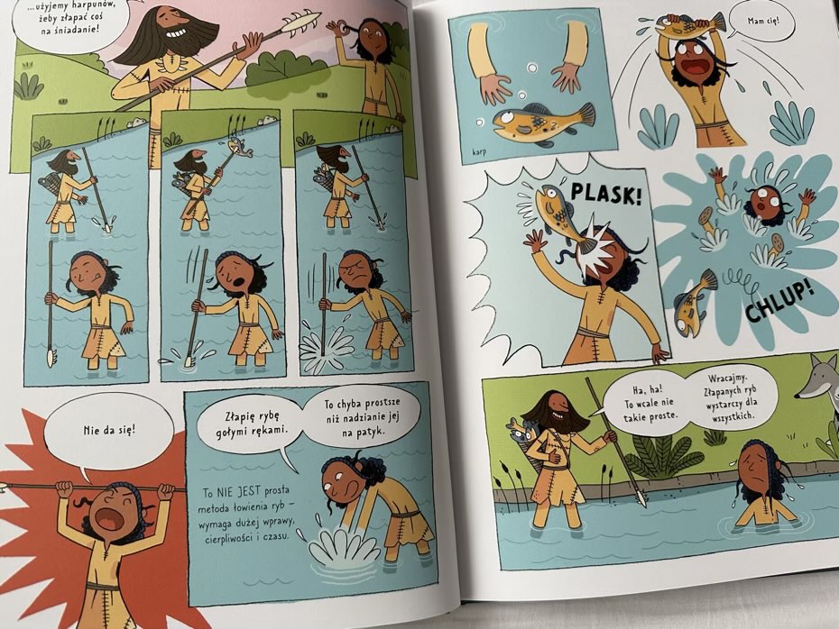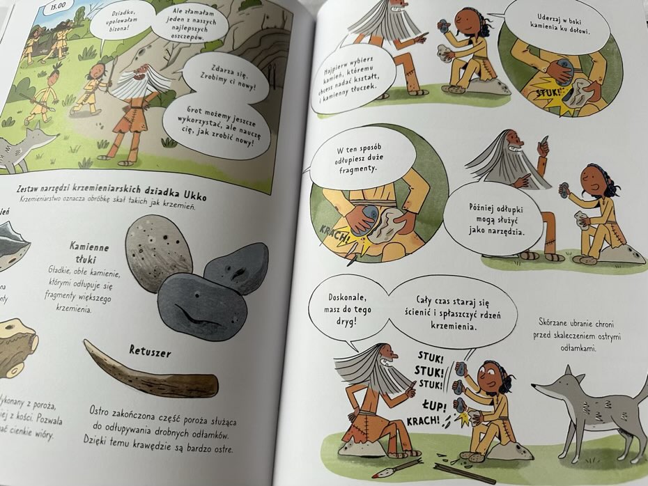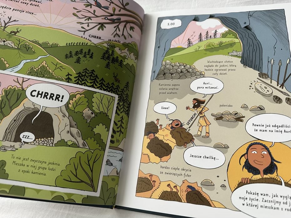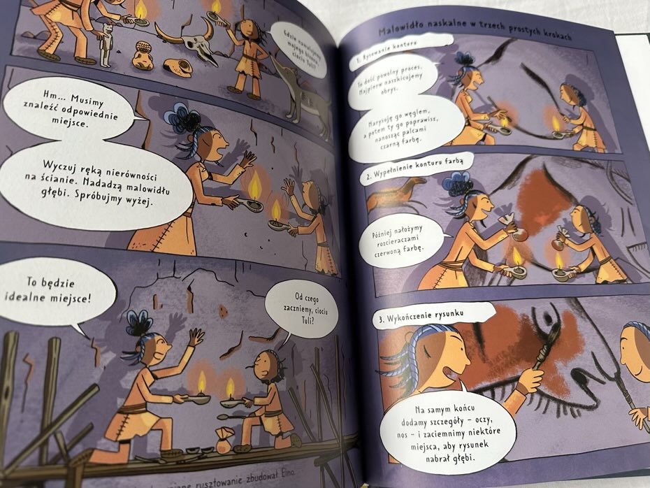 Ta książka fantastycznie obrazuje ludzi żyjących ponad 18 tysięcy lat temu, którzy byli kreatywni, troskliwi i niesamowicie pomysłowi, korzystając z tego, co było dla nich dostępne. Obejmuje różnorodne interesujące aspekty ich życia, które są fajnie zilustrowane. Dzięki kolorowym rysunkom komiks ożywia się podczas czytania.