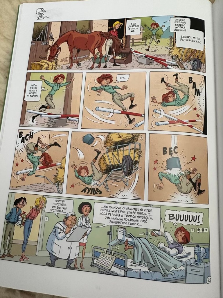 „Turbogalop” różni się od serii „Koń by się uśmiał” wielkością i objętością książki. Prezentowany tytuł ma format A4 i tylko 46 stron. Obie serie wydane są w miękkiej oprawie przez Wydawnictwo Egmont. Humor jest podobny, a język bardzo przystępny, bez negatywnego słownictwa. Jeśli jesteście miłośnikami koni lub kucyków, to jest to lektura, która spowoduje uśmiech na Waszych twarzy. Polecam.