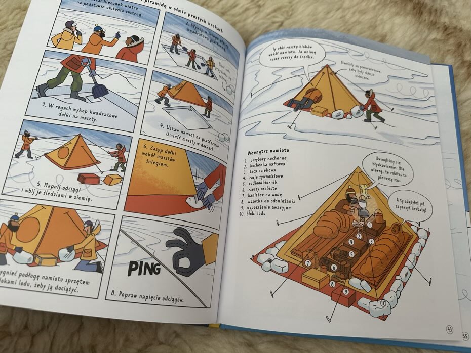 Ze stron książki młodzi czytelnicy dowiedzą się o wyzwaniach związanych z przetrwaniem na Antarktydzie oraz jak wygląda życie polarników. Mogą podziwiać niesamowity krajobraz i poznać lokalną przyrodę, odkrywając całą niesamowitą i ważną naukę, którą prowadzi się na biegunie południowym. Dzieci będą świadkami akcji ratunkowej, zobaczą niezbędny ekwipunek na wyprawę i zapoznają się lokalnymi zwierzętami.