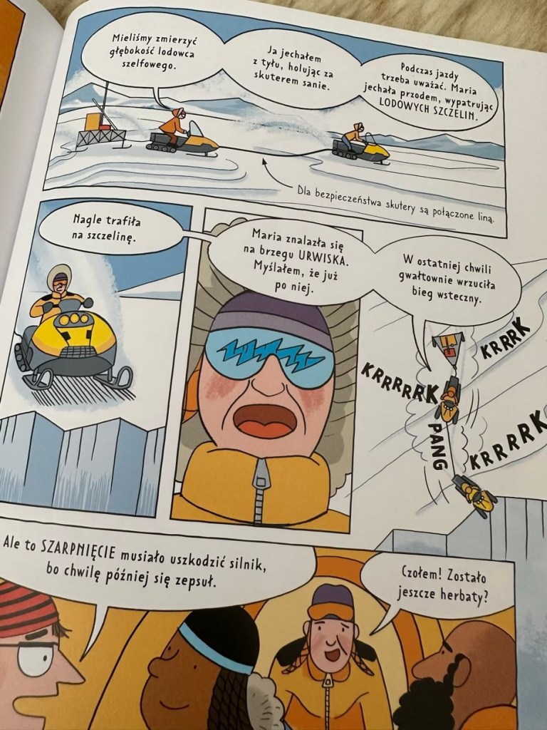 „24 godziny na Antarktydzie” to popularnonaukowy komis dla dzieci ukazany nakładem Wydawnictwa Wilga, który pokazuje życie pewnej ekipy badawczej w mroźnych i trudnych warunkach.