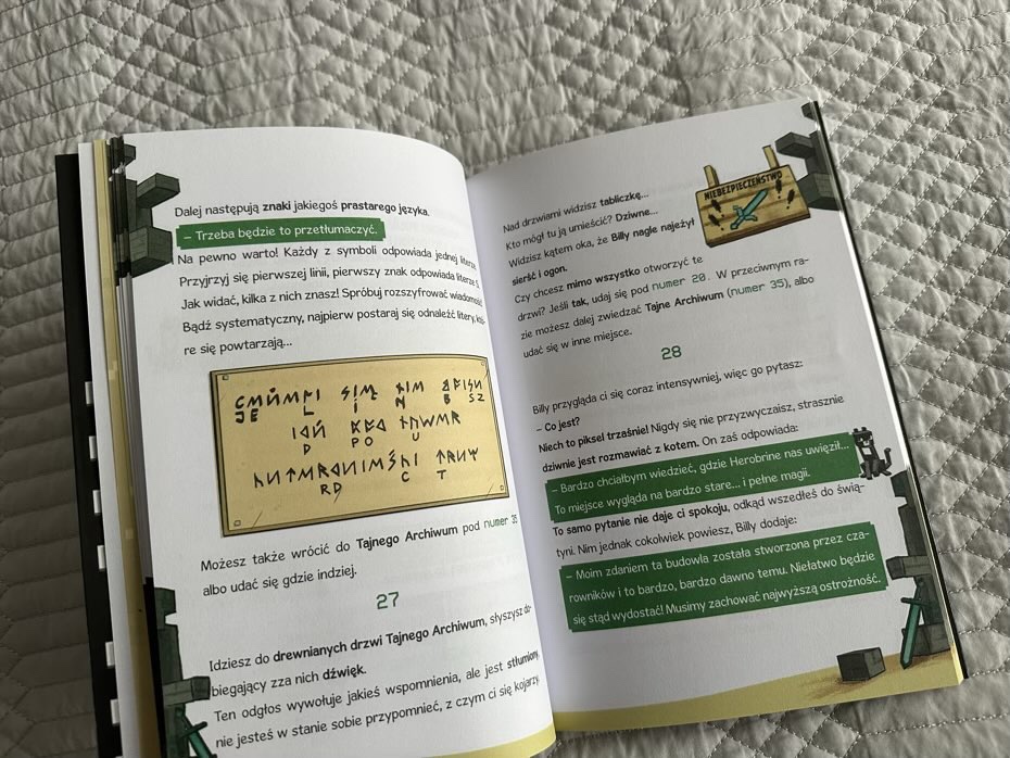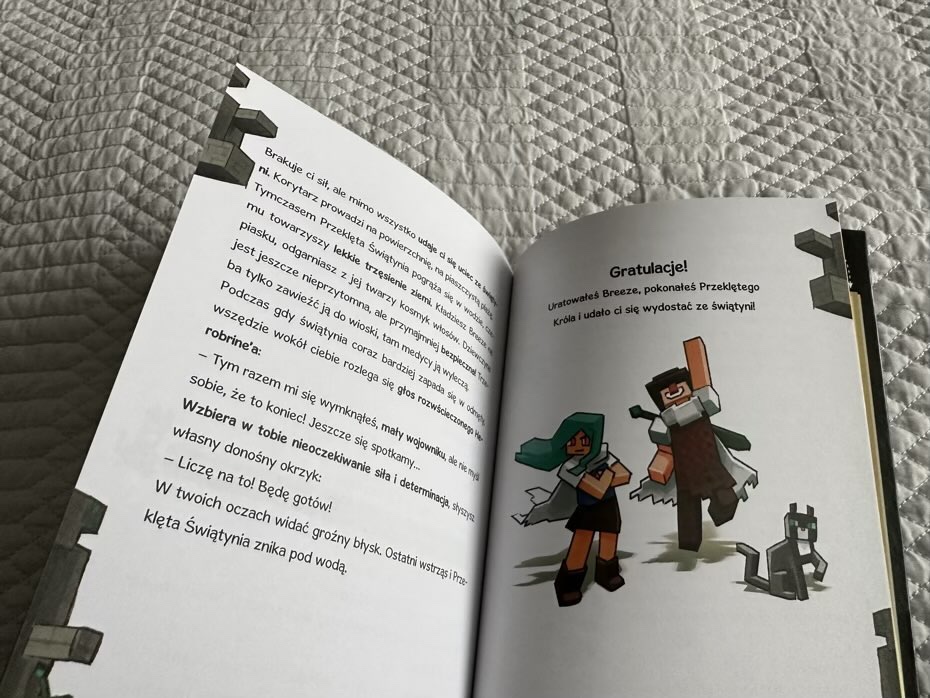 „Przeklęta MEGAświątynia. Escape book. Pamiętnik 8 bitowego wojownika. Tom 1” to książka z grą paragrafową opartą na realiach Minecrafta.