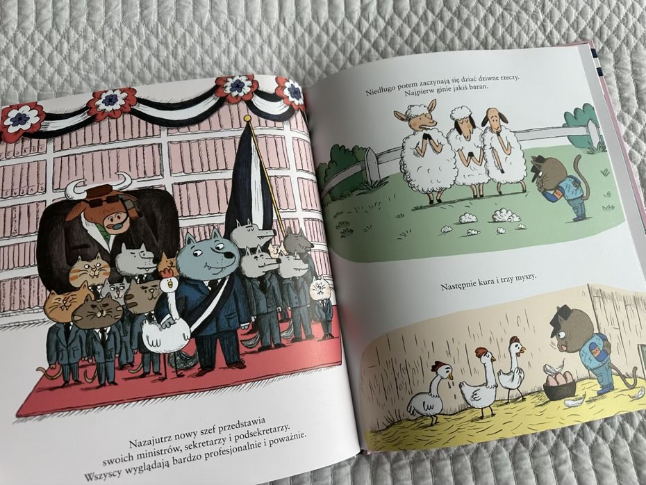 Jak się domyślacie, Wilk wygrał wybory. Szybko przedstawił zwierzętom swoich ministrów, sekretarzy i podsekretarzy. Wkrótce na farmie zaczynają dziać się dziwne rzeczy. Najpierw ginie baran, następnie kura i trzy myszy. Zwierzęta są zaniepokojone i zwołują protest. Jak potoczy się dalsza część historii — zapraszam do lektury.