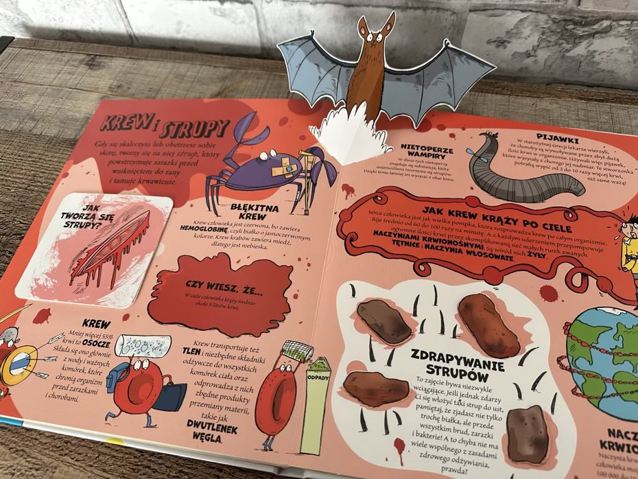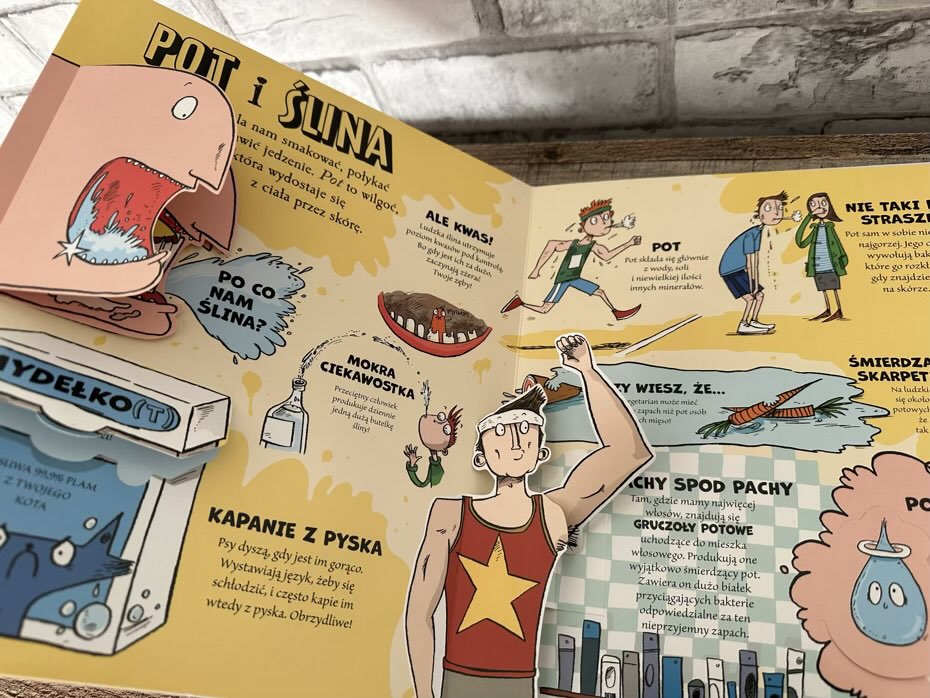 Kiedy ma się dziecko interesujące się swoim ciałem i pytające o najprostsze, choć czasem obrzydliwe rzeczy, to najprostsze jest pokazanie mu obrazków i wyjaśnienie pokrótce o co chodzi. To właśnie ta książka ma w sobie wszystkie elementy — okienka, modele 3D i inne. Tytuł nie tylko zachęca do zabawy poprzez kręcenie kółkiem, wysuwanie bilecików, otwieranie miniaturowych książeczek czy klapek, ale również odpowiada na najczęściej zadawane przez dzieci pytania.